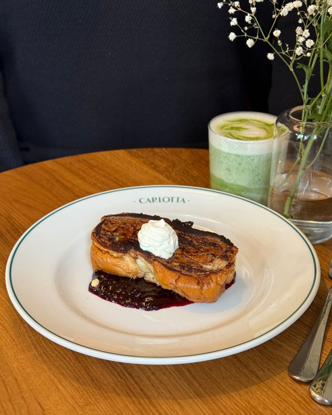 Das Café Carlotta liegt direkt am Holzplatz im Glockenbach und ist eines der neueren Cafés in München zum Frühstücken. Eröffnet wurde das Tagesbistro im September 2024 von Lino Leonhardt. Durch die nach Osten ausgerichteten Fenster fällt am Vormittag viel Sonne in den Raum, was dem Café eine besonders angenehme Atmosphäre verleiht. Die Gästefläche ist jedoch kompakt gehalten und misst nur rund 12,5 Quadratmeter. Zum Glück gibt es auch draußen noch Tische und im Sommer eine etwas größere Terrasse.
